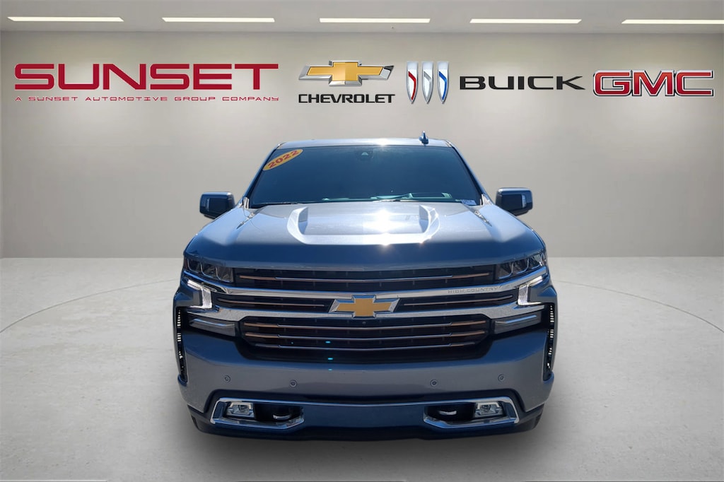 CARFAX One-Owner. Satin Steel Metallic 2022 Chevrolet Silverado 1500 LTD High Country 3LZ EcoTec3 5.3L V8 RWD *$63070 MSRP*, 10-Way Power Driver Seat w/Lumbar, 10-Way Power Passenger Seat Adjuster w/Lumbar, 12-Volt Rear Auxiliary Power Outlet, 120-Volt Bed Mounted Power Outlet, 120-Volt Instrument Panel Power Outlet, 15" Diagonal Multicolor Head-Up Display, 2nd Row Heated Outboard Seats, 8" Driver Information Center, Adaptive Cruise Control, Advanced Trailering System, All-Weather Floor Liner (LPO), Auto-Dimming Inside Rear-View Mirror, Auto-Locking Rear Differential, Automatic Emergency Braking, Automatic temperature control, Auxiliary External Transmission Oil Cooler, Bed View Camera, Bluetooth® For Phone, Body-Color Painted Mirror Caps, Brake assist, Chevrolet Connected Access Capable, Chevytec Spray-On Black Bedliner, Chrome Assist Steps, Chrome Grille, Chrome Recovery Hooks, Color-Keyed Carpeting Floor Covering, Compass, Deep-Tinted Glass, Driver Memory, Dual Exhaust w/Polished Outlets, Electric Rear-Window Defogger, Electronic Cruise Control, Floor Mounted Center Console, Following Distance Indicator, Forward Collision Alert, Front anti-roll bar, Front Carpeted Floor Mats, Front dual zone A/C, Front fog lights, Front LED Fog Lamps, Front Pedestrian Braking, Front wheel independent suspension, Fully automatic headlights, HD Rear Vision Camera, HD Surround Vision w/2 Trailer View Camera Provisions, Heated Driver & Front Outboard Passenger Seats, Heated Steering Wheel, High Country Deluxe, Hitch Guidance, Hitch Guidance w/Hitch View, Integrated Trailer Brake Controller, IntelliBeam Automatic High Beam On/Off, Keyless Open & Start, Lane Change Alert w/Side Blind Zone Alert, Lane Keep Assist w/Lane Departure Warning, Leather Wrapped Steering Wheel, LED Cargo Area Lighting, Low tire pressure warning, Manual Tilt/Telescoping Steering Column, Memory seat, Navigation System, OnStar & Chevrolet Connected Services Capable, Outside Heated Power-Adjustable Mirrors, Power Door Locks, Power Front Passenger Windows w/Express Up/Down, Power Front Windows w/Driver Express Up/Down, Power Rear Windows w/Express Down, Power Sliding Rear Window w/Rear Defogger, Power Sunroof, Power Tailgate, Preferred Equipment Group 3LZ, Premium Bose 7-Speaker Sound System, Rear Camera Mirror, Rear Carpeted Floor Mats, Rear Cross Traffic Alert, Rear Dual USB Charging-Only Ports, Rear Wheelhouse Liners, Remote keyless entry, Remote Vehicle Starter System, Safety Alert Seat, Safety Package II, Security system, Standard Tailgate, Steering Wheel Audio Controls, Steering wheel mounted audio controls, Technology Package, Theft Deterrent System (Unauthorized Entry), Trailering Package, Ultrasonic Front & Rear Park Assist, Universal Home Remote, Up-Level Rear Seat w/Storage Package, Ventilated Driver & Front Passenger Seats, Wheels: 22" x 9" Polished Aluminum, Wi-Fi Hot Spot Capable, Wireless Charging, Wireless Phone Projection.