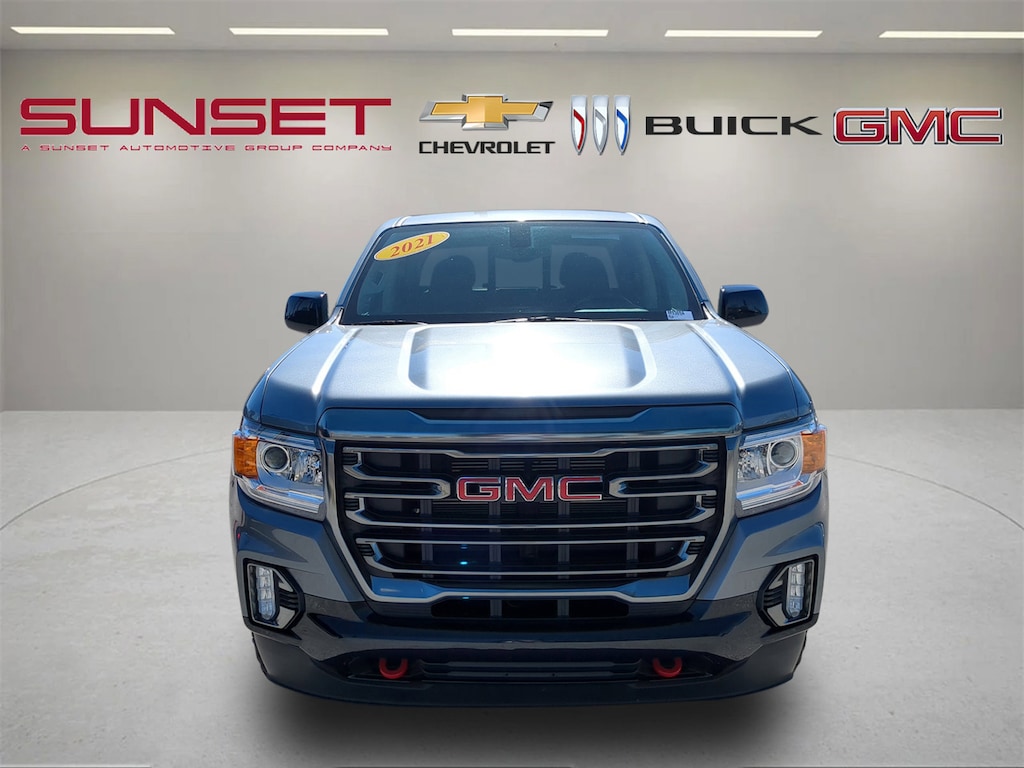 CARFAX One-Owner. Satin Steel Metallic 2021 GMC Canyon AT4 w/Leather 4SB V6 4WD **THIS BEAUTY NEEDS NOTHING**, 1st & 2nd Rows All-Weather Floor Liner (LPO), 3.42 Rear Axle Ratio, 4-Wheel Disc Brakes, 6-Speaker Audio System Feature, Apple CarPlay/Android Auto, AT4 Off-Road Performance Edition Package, Automatic temperature control, Black AT4 Badges (LPO), Black Spray-On Bedliner w/GMC Logo, Driver Instrument Information Enhanced Display, Electronic Stability Control, Exterior Parking Camera Rear, Front fog lights, Fully automatic headlights, GMC Black Chrome Exhaust Tip (LPO), HD Radio, Heated Driver & Front Passenger Seats, Hitch Guidance, Integrated Trailer Brake Controller, Leather-Appointed Seat Trim, Low tire pressure warning, Off-Road Rocker Protection (LPO), Power Driver Lumbar Control Seat Adjuster, Power Passenger Lumbar Control Seat Adjuster, Preferred Equipment Group 4SB, Radio: AM/FM w/8" Diagonal Multi-Touch Display, Remote keyless entry, Security system, SiriusXM Radio, Speed-sensing steering, Suspension Leveling Kit (LPO), Telescoping steering wheel, Tilt steering wheel, Tow/Haul Mode, Traction control, Wheels: 17" x 8" Gloss-Black Aluminum.
