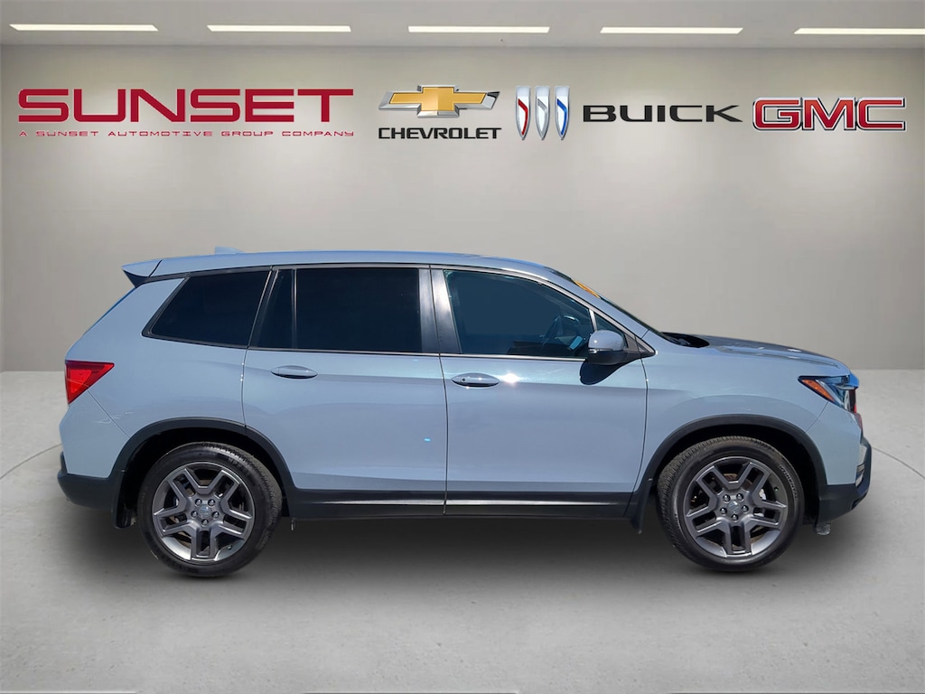 Gray 2022 Honda Passport EX-L 3.5L V6 24V SOHC i-VTEC FWD 4-Wheel Disc Brakes, Apple CarPlay/Android Auto, Auto High-beam Headlights, Automatic temperature control, Blind Spot Information (BSI) System warning, Brake assist, Driver's Seat Mounted Armrest, Electronic Stability Control, Exterior Parking Camera Rear, Forward collision: Collision Mitigation Braking System (CMBS) + FCW mitigation, Four wheel independent suspension, Front Bucket Seats, Front dual zone A/C, Fully automatic headlights, Heated Front Bucket Seats, Lane departure: Lane Keeping Assist System (LKAS) active, Leather-Trimmed Seats, Low tire pressure warning, Memory seat, Power driver seat, Power Liftgate, Power moonroof, Power passenger seat, Radio: 215-Watt Audio System w/7 Speakers, Rear air conditioning, Remote keyless entry, Security system, Split folding rear seat, Telescoping steering wheel, Tilt steering wheel, Traction control, Wheels: 20" Pewter Gray Alloy.