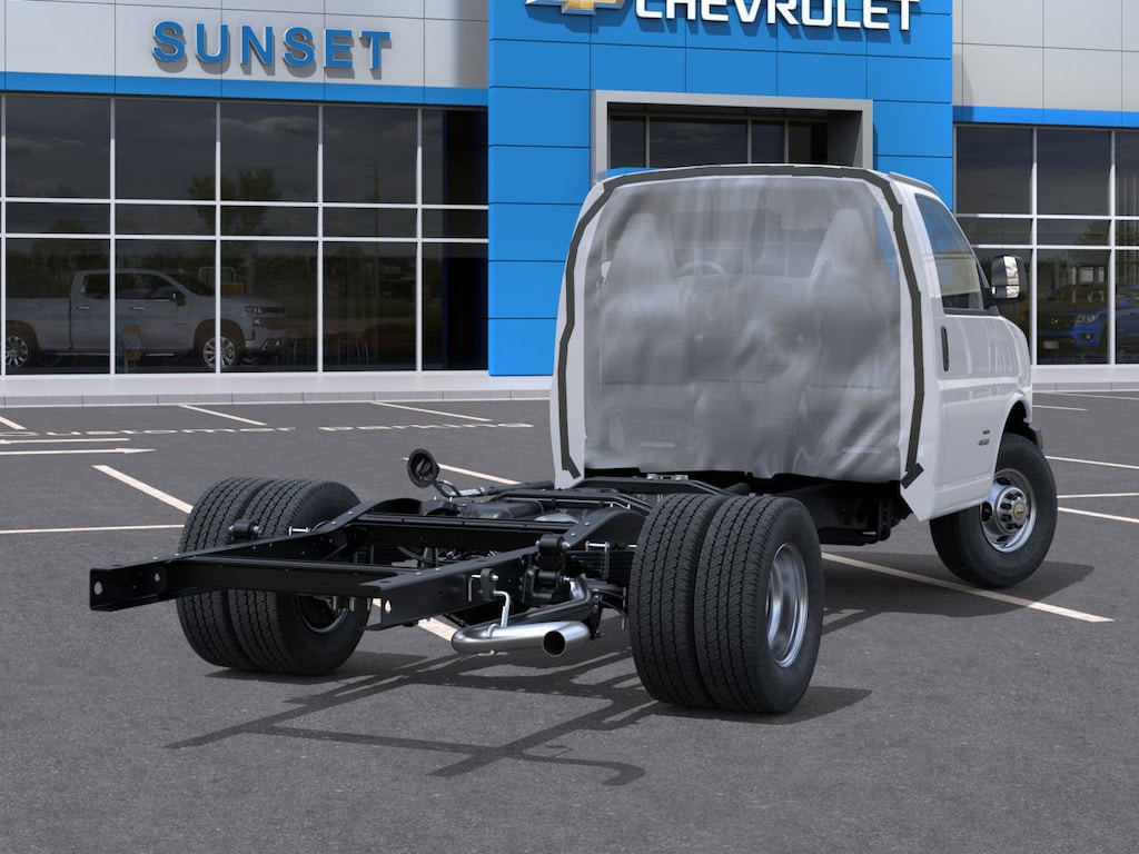 POWER CONVENIENCE PACKAGE includes (A31) power windows and (AU3) power door locks, GVWR, 12,300 LBS. (5579 KG) (Includes (R05) dual rear wheel configuration. When ordered with (L8T) 6.6L gas V8 engine and (NHT) Enhanced Towing Performance Package includes (GT5) 4.10 axle ratio., DRIVER CONVENIENCE PACKAGE includes Tilt-Wheel and (K34) cruise control, CHROME APPEARANCE PACKAGE (Includes (V46) front chrome bumper and (V22) chrome grille. , TIRES, REAR LT225/75R16E ALL-SEASON, BLACKWALL Jack and spare tire equipment bracket are not included.), TIRES, FRONT LT225/75R16E ALL-SEASON, BLACKWALL Jack and spare tire equipment bracket are not included.), THEFT ALARM NOTIFICATION requires paid plan, working electrical system, cell reception, GPS signal, armed GM factory-installed theft-deterrent system, contact method on file and enrollment to receive alerts. Message and data rates may apply. See onstar.com for details and limitations, SUMMIT WHITE, SEATS, FRONT BUCKET WITH CUSTOM CLOTH TRIM, HEAD RESTRAINTS AND INBOARD ARMRESTS Includes only driver high-back bucket seat with Custom Cloth trim when ordered with (ZX1) driver-only high-back bucket seating arrangement. Includes (BA3) engine cover console with swing-out bin.), SEATING ARRANGEMENT, DRIVER AND FRONT PASSENGER HIGH-BACK BUCKET includes head restraints and vinyl or cloth trim (STD), REMOTE KEYLESS ENTRY with 2 transmitters and remote panic button, REAR AXLE, 3.73 RATIO, PAINT, SOLID, MIRRORS, OUTSIDE WIDE-STANCE SAIL PANEL MOUNTED (VELVAC). Provides Velvac convex combination RH and LH outside rear view mirrors that are sail panel mounted with arms that provide a wide stance. Mirrors can be utilized with bodies that are up to 96 inch width. Mirrors provide a 63.3 sq. inch flat glass positioned over a 30.1 sq. inch convex glass within a common head. Mirrors are shipped loose in vehicle, MEDIUM PEWTER, CUSTOM CLOTH SEAT TRIM.