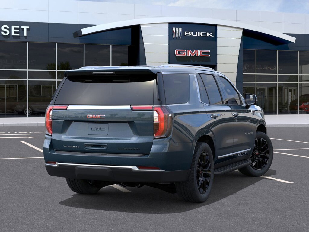 REAR AXLE, 3.23 RATIO, LPO, 22" (55.9 CM) MULTI-SPOKE GLOSS BLACK WHEELS LPO wheels will come with 4 steel 22" wheels from the factory with alignment specs set to 22" LPO wheel selected (dealer-installed) (Includes wheel locks and not (SFE) wheel locks, LPO., JET BLACK, CORETEC/PERFORATED LEATHER-APPOINTED SEATING, GVWR, 7400 LBS. (3357 KG) (STD), ENGINE, 5.3L ECOTEC3 V8 with Dynamic Fuel Management, Direct Injection and Variable Valve Timing, includes aluminum block construction (355 hp [265 kW] @ 5600 rpm, 383 lb-ft of torque [518 Nm] @ 4100 rpm) (STD), ELEVATION PREFERRED EQUIPMENT GROUP Includes Standard Equipment, DOWNPOUR METALLIC, CONSOLE, FLOOR, POWER-SLIDING CENTER with drawer, secure storage, manual sliding armrest and cup holders for second row;, AUDIO SYSTEM, 16.8" DIAGONAL PREMIUM GMC INFOTAINMENT SYSTEM with high contrast display and local backlight dimming, with Google built-in compatibility, including navigation capability, color touch-screen, multi-touch display, connected apps, personalized profiles for each driver's settings, and Natural Voice Recognition (STD), 3 YEARS SIRIUSXM SiriusXM Extended Service subscription will stop at the end of the applicable subscription period unless you decide to continue service. Plan is non-transferable and non-refundable. Service subject to the SiriusXM Customer Agreement and Privacy Policy, visit siriusxm.com/terms to see complete terms and how to cancel which includes online methods or calling 1-866-635-2349. Some services, content and features are subject to device capabilities, an active data connection enabled in the vehicle and location availability. All fees, content and features are subject to change. Content varies by subscription plan. SiriusXM and related logos are trademarks of Sirius XM Radio Inc. and its respective subsidiaries.), Wireless Phone Charging, for portable devices, Wireless Apple CarPlay/Wireless Android Auto, Wipers, front intermittent, Rainsense, Wiper, rear intermittent, Windows, power, rear with Express-Down.