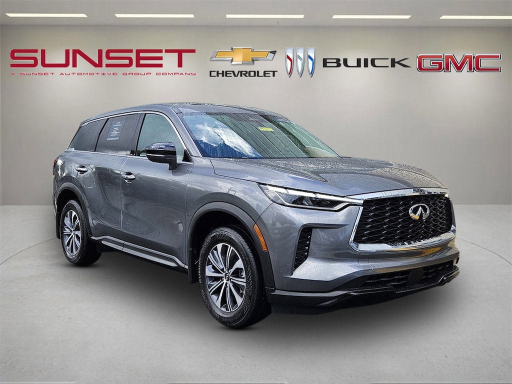 Recent Arrival! Graphite Shadow 2024 INFINITI QX60 PURE 3.5L V6 DOHC 24V FWD **CERTIFIED WITH LIMITED BUMPER TO BUMPER WARANTY**, **10 DAY SATISFACTION GAURANTEE**, *V-6*, 4.33 Axle Ratio, 9 Speakers, Apple CarPlay/Android Auto, Automatic temperature control, Blind Spot Warning, Brake assist, Electronic Stability Control, Front dual zone A/C, Fully automatic headlights, Heated door mirrors, Heated front seats, Heated steering wheel, Leather Shift Knob, Leather steering wheel, Leather-Appointed Seating Surfaces, Memory seat, Power Liftgate, Power moonroof, Power passenger seat, Rain sensing wipers, Rear air conditioning, Rear Parking Sensors, Reclining 3rd row seat, Security system, Split folding rear seat, Telescoping steering wheel, Tilt steering wheel, Turn signal indicator mirrors, Wheels: 18" x 8J Machined Aluminum Alloy.Odometer is 8423 miles below market average! 21/26 City/Highway MPGPricing excludes tax, tag, title and pre-delivery service fee of $999 and private tag agency fee of $24.40. *See below for details.