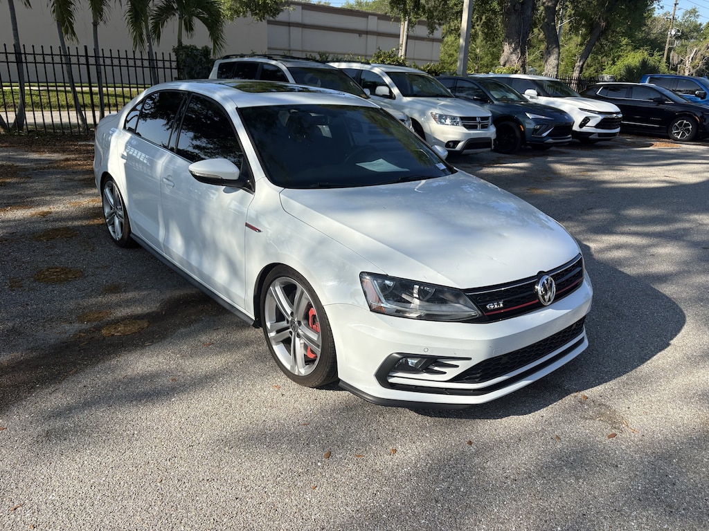 Home of the As-Traded Vehicles where every scratch, ding, and dent tells a story. Instead of sending this vehicle straight to auction, we are giving you the chance to buy it first. Offered exactly as it was traded, this is a great option for budget-conscious buyers or those looking for a project vehicle. Please note, a state-required safety inspection must be completed prior to delivery, at customer expense.Recent Arrival! 2017 Volkswagen Jetta GLI GLI 2.0L I4 TSI Turbocharged FWD *AFTERMARKET EXHAUST*, **LOW MILES FOR THE YEAR**, **CTS TUNED**, **AFTERMARKET COLD AIR INTAKE**, ***SUSPENSION MODIFICATIONS LOWERED***, 18" Mallory Alloy Wheels, ABS brakes, Air Conditioning, AM/FM radio: SiriusXM, Dual front impact airbags, Exterior Parking Camera Rear, Front anti-roll bar, Front dual zone A/C, Front reading lights, Fully automatic headlights, Leather Shift Knob, Low tire pressure warning, Occupant sensing airbag, Panic alarm, Power driver seat, Power moonroof, Power steering, Power windows, Radio: Discover Media w/Navigation, Remote keyless entry, Sport steering wheel, Traction control, V-Tex Leatherette Seat Trim, Variably intermittent wipers.Odometer is 37373 miles below market average! 24/33 City/Highway MPGAwards:* 2017 IIHS Top Safety Pick+ * 2017 KBB.com 10 Best Used Compact Cars Under $15,000 * 2017 KBB.com 10 Coolest New Cars Under $18,000Pricing excludes tax, tag, title and pre-delivery service fee of $999 and private tag agency fee of $24.40. *See below for details.