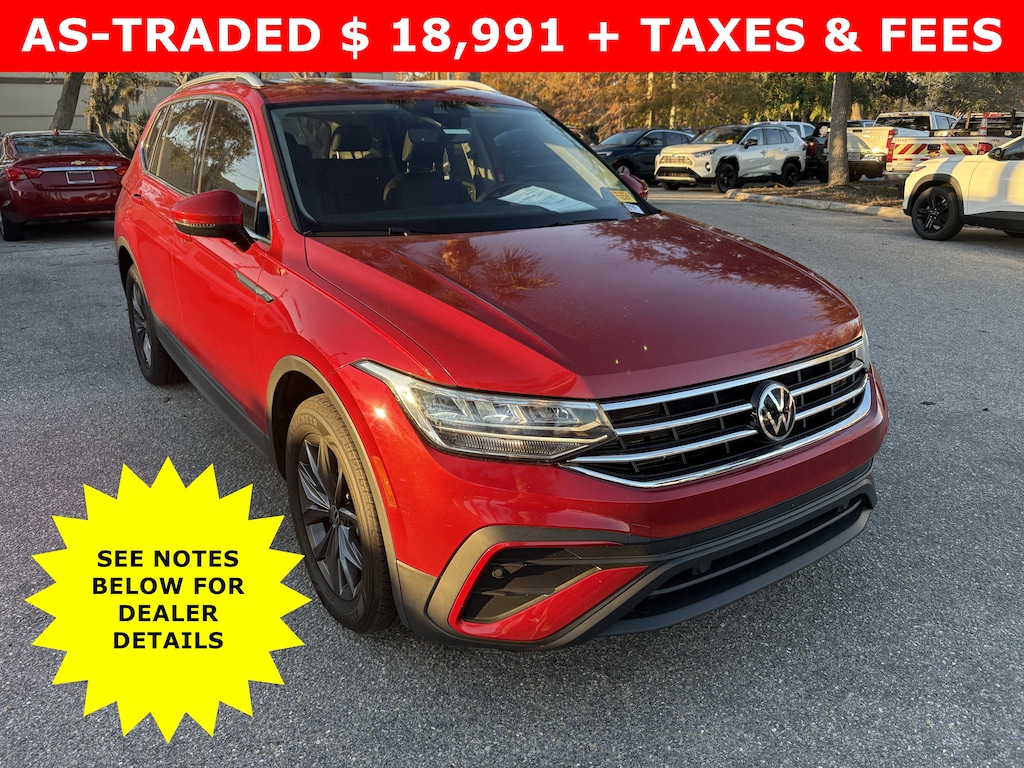 Recent Arrival! Red Metallic 2022 Volkswagen Tiguan 2.0T SE 2.0L TSI DOHC FWD 3rd row seats: bench, 4-Wheel Disc Brakes, 4-Wheel Independent Suspension, Automatic temperature control, Brake assist, Exterior Parking Camera Rear, Front anti-roll bar, Front Bucket Seats, Front dual zone A/C, Fully automatic headlights, Heated door mirrors, Heated Front Comfort Seats, Illuminated entry, Leather Shift Knob, Low tire pressure warning, Overhead console, Panoramic Sunroof Package, Perforated V-Tex Leatherette Seating Surfaces, Power driver seat, Power Liftgate, Radio: MIB3 Composition Media AM/FM/HD, Rain sensing wipers, Rear anti-roll bar, Rear window wiper, Remote keyless entry, Roof rack: rails only, Security system, Split folding rear seat, Steering wheel mounted audio controls, Telescoping steering wheel, Tilt steering wheel, Turn signal indicator mirrors, Wheels: 18" Dark Graphite 10-Spoke Alloy.